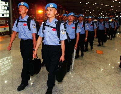 7月26日,在首都国际机场,我国第十支赴利比里亚维和警队官兵启程。这支警队由湖南省公安机关单独组建,有来自刑侦、禁毒、特警、交警等警种和部门的17名队员组成。由浙江省公安机关单独组建的第九支赴利比里亚警队将于8月1日结束维和任务回国。