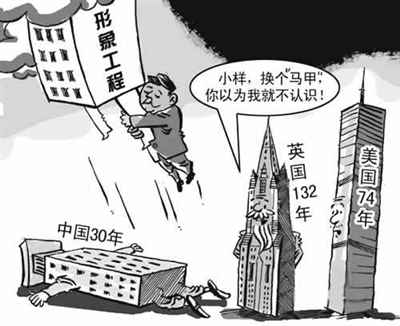 根据我国《民用建筑设计通则》,重要建筑和高层建筑主体结构的耐久年限为100年,一般性建筑为50至100年,但是中国的建筑却呈现出“短命”态势,平均寿命仅为25至30年。而在英国,建筑的平均寿命为132年,美国为74年。相关专家认为“,短命”并非工程质量原因,而是由于城市建设规划缺乏严肃性,以及一些地方政府的利益驱动使然。