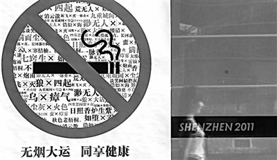 正在深圳举行的第二十六届世界大学生夏季运动会着力打造“绿色大运”,纸制可回收的服务设施以及宣传环保海报在赛场内外无处不在。图为8月17日拍摄的大运会击剑赛场内的禁烟宣传海报。