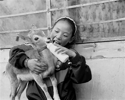 11岁的藏族女孩仁青巴毛,家住青海省玉树藏族自治州囊谦县白扎乡巴麦村。这里经常能见到大群的国家二级保护动物岩羊。 “拉毛”藏语里意为“仙女”,是仁青巴毛两个月前从山林里救助的一只被遗弃的岩羊。 “‘小拉毛’刚开始非常怕人,我把它抱回家后,白天喂它酸奶,晚上抱着它睡觉。我特别喜欢它,它也离不开我了,我们现在就像亲姐妹一样,成了最好的朋友。”仁青巴毛说,等到“小拉毛”长大了,她再把它放回山林。