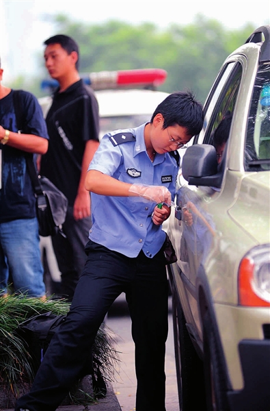 昨天下午3点左右,本报记者接到热线报料称,杭州市西湖区紫荆花路府苑新村附近有人“持枪劫车”。记者立即赶到现场,在案发地,一辆杭州牌照的沃尔沃越野车完好地停靠在路边,周围有4辆警车、十多名公安民警。