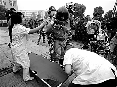 昨天上午,杭州消防大关中队在浙江大学城市学院举行消防安全逃生演习。消防官兵利用登高车、救生气垫等消防设备为该校1400余名大一新生详细介绍了逃生时的注意事项,增强了学生消防安全意识。