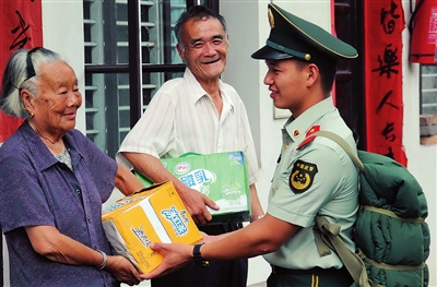 昨天,是玉环县消防战士王潮赴中国武警学院深造的日子。临行前,他再一次来到当地的沙鳝敬老院,为5位孤寡老人送上礼品,并和老人们一一道别。 王潮是位大学生士兵,入伍前是浙江财经学院大二学生,2009年12月入伍后来到玉环县消防大队。当兵以来,他每月都要到敬老院看望5位孤寡老人。今年6月,王潮参加全军考试,以全省消防部队总分第4名的优异成绩被中国武警学院录取。