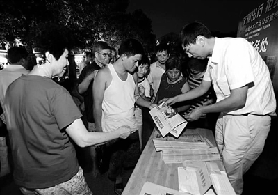舞台的一侧设立了本报服务台和律师咨询台。本报的一位热心读者何先生借着路灯光,翻阅着我们当天的报纸。“舞台那里太多人了,挤不进去,我还是喜欢看看报纸。”何先生说,他单位里订了我们的报纸,所以他对《浙江法制报》很熟悉。有时碰到觉得有警示作用的故事,他还会把报纸带回家给孩子看。“跟孩子讲大道理,他听不进去的,看报纸能让他有直观感受。”