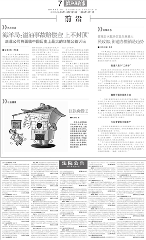 海洋局:溢油事故赔偿金“上不封顶”