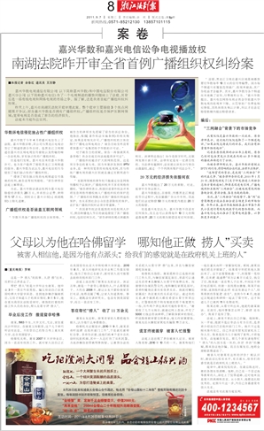 嘉兴华数于今年4月将嘉兴电信告上了法院。嘉兴华数诉称,其公司与黑龙江电视台签订了频道资源合作合同,是黑龙江卫视频道在嘉兴市区域电视信号接收以及传输的唯一合法机构,享有独占性的广播组织权。