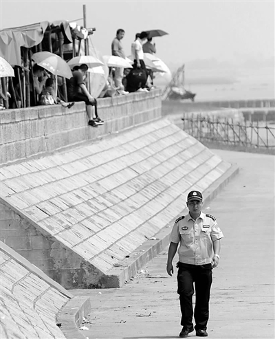 上午10点半,离当天的涨潮时间还有一个半小时,张峰和同事们开始巡逻。离海塘一公里左右的丁字坝上,有几个人在走动。张峰和一名保安随即小跑着赶过去“:潮水经过这里时,整个丁字坝都会被淹没。得叫他们赶紧回来!”