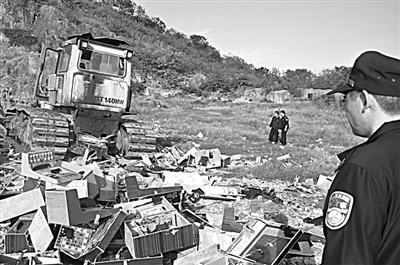 11月29日下午,海盐县公安局在垃圾填埋场集中销毁了226台具有赌博功能的电子游戏机。
