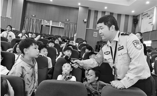 近日,温州龙湾公安沙城派出所党员民警陈巨匾走进沙城三小,为孩子们上了一堂别开生面的防欺凌课。在课堂互动环节,孩子们热情高涨,纷纷高举小手,积极参与问答,在心里种下“拒绝欺凌”的种子。 通讯员 王娟 摄