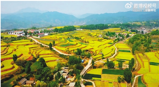 近日,在河南省济源市王屋山下,白菜花海翻涌成金色浪潮,与苍翠山峦相映成趣,绘就成一幅浓墨重彩的春日油画。