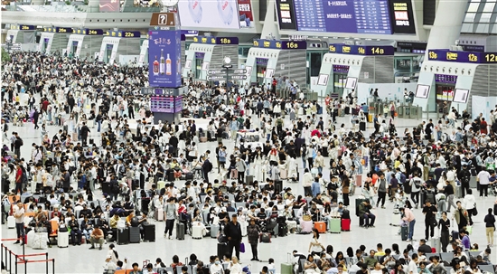 5月5日,“五一”假期最后一天,杭州东站迎来返程高峰。据中国铁路上海局集团有限公司介绍,当天长三角铁路预计发送旅客386万人次。