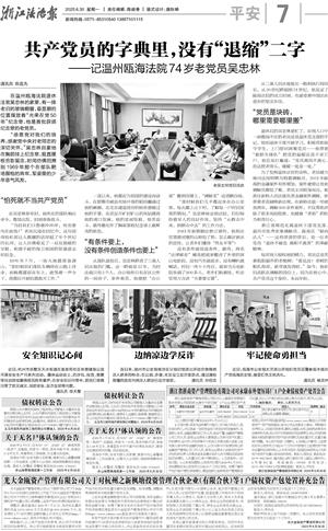 浙江省规范化离退休干部党支部、温州市优秀家事调解员、瓯海区“银尚达人”……这些荣誉的背后,是一位老党员“退休不褪色 离职不离责”的奉献精神。