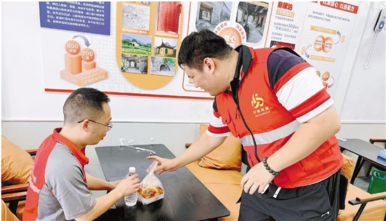 “很多新就业群体和外来务工人员刚开始都不好意思进来,我们就主动走出去邀请。”胡艺腾指着墙上“暖心路廊 欢迎回家”的标语说,“进来歇一歇,喝口水,不碍事的”是他最常说的一句话。如今,越来越多的外卖员、保洁员、建筑工人等愿意走进来热饭、接水、歇脚,陌生人同桌聊天,甚至互相提供招工信息,拉近了彼此的距离。