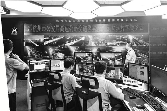 上午10点39分,大屏系统发出警报:S2沪杭高速K17+400M处,一辆白色小车追尾后横在路中央,三个车道通行中断,后方出现长距离拥堵。胡跃庭立即启动“一路多方”联勤共治机制,与驻点的高速公路经营管理单位人员协同处置。