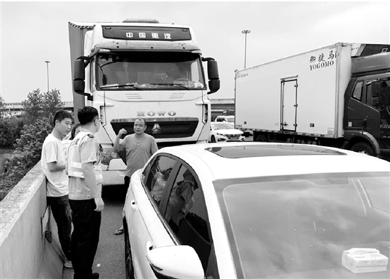 “我们刚要报警。”一名惊魂未定的司机举着手机,惊讶地对记者说,“没想到交警的电话先打过来了!他们说通过监控已经看到了,让我们听从后续安排。”巡逻民警迅速上前引导事故车辆:“人没受伤、车还能动,请立即驶离高速,到前方萧山东收费站处理。”随着事故车驶离,后方车流开始松动,缓缓恢复通行。