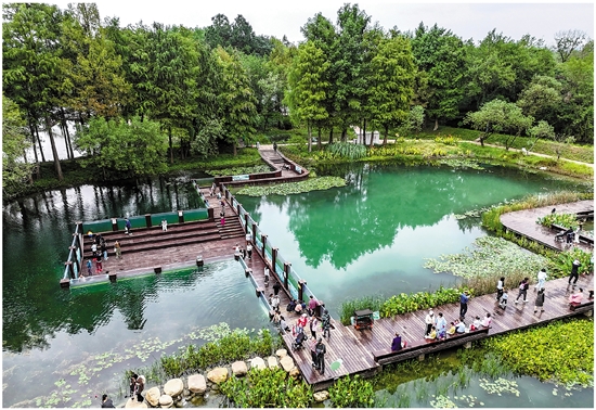 杭州西溪湿地水下生态观光廊道今年5月完成修复并重新向公众开放,迅速成为游客亲近自然、沉浸观景的热门打卡地。近日,这条长廊再度升级——一批设计精美、内容详实的新科普展示牌正式亮相,为游览体验增添了更丰富的知识内涵与趣味。