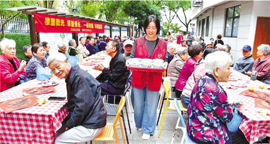 10月21日,建德市新安江街道府西社区为80周岁以上的老人准备了长寿面、团圆馒头等传统美食,让老人们在欢声笑语中喜迎重阳佳节到来。