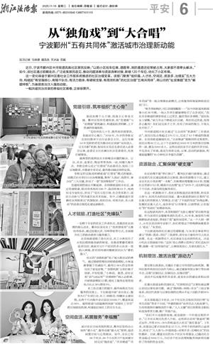 这一变化得益于鄞州区委社会工作部系统推进的社区治理变革。该部门聚焦“组织强、人才优、空间足、资源多、治理实”五大方向,构建起“有坚强核心、有精干队伍、有活力载体、有硬核支撑、有高效机制”的社区治理“五有共同体”,将以往的“扯皮难题”变为“解题样板”,为基层善治注入强劲动能。