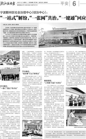 近年来,鄞州区积极探索三级综治中心规范化建设,编纂制定建设与管理规范,明确分类调处流程指引,健全入驻部门监督考评机制,完善政法委、信访、公安、检察院、法院、司法行政等部门之间的信息交互和联动联办机制,不断提升协同解纷能力。