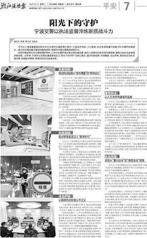 宁波交警以法治建设为抓手,通过全流程监管健全执法标准、强化案件攻坚、规范权力运行,构建起“打击有力、裁量公正、程序严密”的执法保障体系。