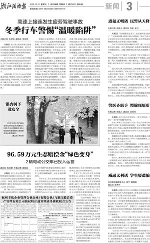 本报讯 连日来,杭州及周边高速公路接连发生疲劳驾驶事故。杭州公安交管部门提醒,冬季在车内长时间开启温度过高的暖风,极易诱发困意,在高速行车环境下风险增加。