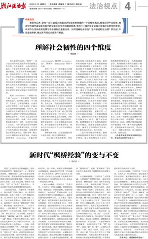 党的二十届四中全会明确提出,坚持和发展新时代“枫桥经验”。这一要求深刻表明,“枫桥经验”已不仅是基层治理的生动实践,更是推进国家治理体系和治理能力现代化的重要支撑。“枫桥经验”的历久弥新,正在于其实现了变革性与连续性、“变”与“不变”的有机统一,生动诠释了中国式治理智慧的时代活力。