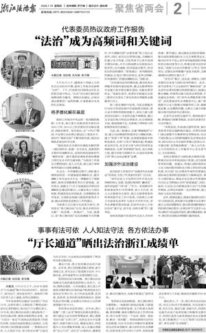 今年是省委作出建设“法治浙江”决定20年,这些年浙江主要取得了哪些成效?面对记者的提问,省司法厅厅长戴纪表示,20年来,浙江推动法治浙江建设取得了一系列实践成果、制度成果和理论成果。如“大综合一体化”行政执法改革取得了阶段性成果,全国法治政府建设示范地区、示范项目浙江创成数量全国第一,“事事有法可依、人人知法守法、各方依法办事”日益成为社会共识,为全面依法治国提供了鲜活样本和实践经验。