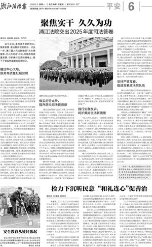 公平正义,是司法不变的初心;服务发展,是法院自觉的担当。过去一年,浦江县人民法院锚定“为大局服务、为人民司法”目标,在服务高质量发展、守护美好生活的画卷上,留下了坚实而温暖的司法印记。