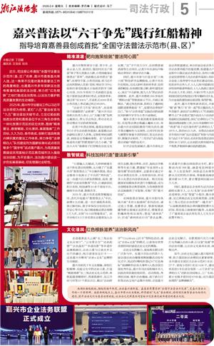 近日,司法部公布首批“全国守法普法示范市(县、区)”名单,嘉兴市嘉善县光荣入选,这一殊荣不仅是对嘉善县普法工作的高度肯定,也是嘉兴市多年深耕法治宣传教育和基层依法治理,努力把“红色根脉”之地打造成法治高地,以法治力量护航高质量发展的生动缩影。