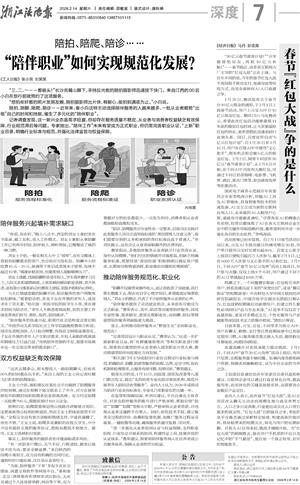 浙江法治报 深度 00007 “陪伴职业”如何实现规范化发展? 2026-02-14 浙江法治报2026-02-1400008;浙江法治报2026-02-1400009;27926310 2 2026年02月14日 星期六