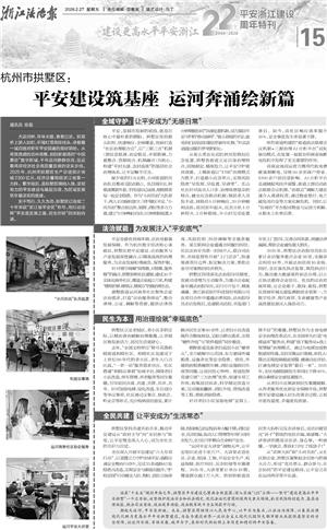 从“武林大妈”到“小河共治”,从社区到企业,拱墅区凝聚起全民参与的强大合力,形成“党员带头、群众参与、社会协同”的平安建设格局,让平安之花在运河两岸常开长盛。