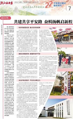 2025年,绍兴市上下凝心聚力、真抓实干,深入贯彻习近平法治思想和总体国家安全观,全面落实中央、省委和市委关于更高水平平安建设的各项决策部署,严格执行《维护社会稳定责任制规定》和《浙江省平安建设条例》,织密平安防护网、筑牢安全防火墙、夯实基层治理基座,扎实推进更高水平平安绍兴建设,用实干与担当书写了一份亮眼的平安答卷,一幅“人人参与、人人建设、人人共享”的平安画卷在越州大地生动呈现。