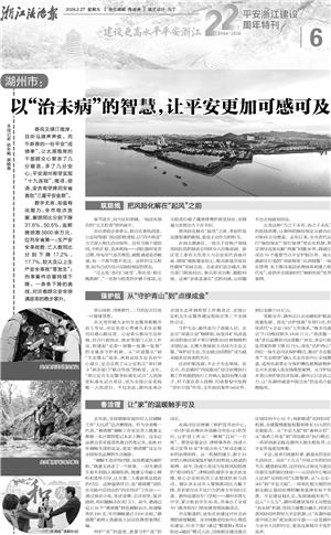 平安,是老百姓最朴素、最基本的美好生活向往。站在“十五五”开局之年的时间节点,眺望新征程,这份向往正转化为更加可感可及的真切体验——从综治中心集成入驻到“双网协同”压降警情,从“e企安·365”到“平安大姐”,一项项扎根大地的创新实践让基层治理的触角延伸至每个角落。平安建设越扎实,发展就越有底气。迈入“十五五”,湖州将继续坚持主动塑造“治未病”机制、坚持力量整合融合,持续完善风险闭环管控大平安机制,让“在湖州感受中国之治”更加真实可感——这是湖州与全市人民的约定,更是这座城市不变的追求。