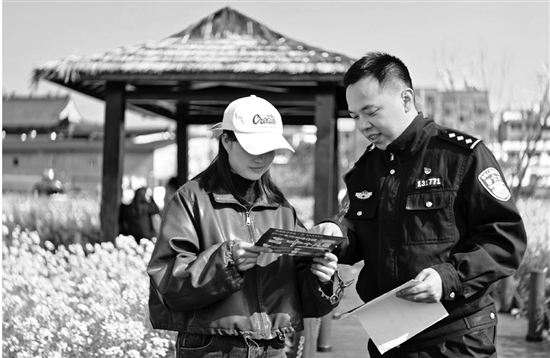 近日,温州龙湾公安天河派出所民警走进司南节气公园开展反诈宣传,向前来赏花的群众讲解电信网络诈骗典型案例、作案手段及防范技巧,在春日美景中筑牢反诈安全防线。