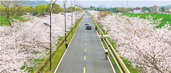 | 阳春三月,杭州市余杭区漕雅线沿线樱花次第绽放,形成绵延2公里的浪漫廊道。余杭区交通运输局推行“公路养护+樱花养护”双轮驱动,在修复路面、优化设施的同时,新植染井吉野樱花600余株,并加强修枝、病虫害防治及水肥管理。 此外,杭徽入城口的官山公园内,100余种、1503株樱花也已盛放,粉白花海沿山势铺展,为周边居民送上春日的生态温情。 潮新闻记者 董旭明 通讯员 计丽艳 摄 |