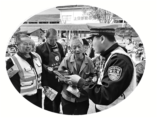 | 茶叶市场里宣讲交通安全知识 金佳雯 摄 |