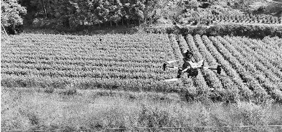 | 无人机在茶园里悬空喊话 汤洁 摄 |