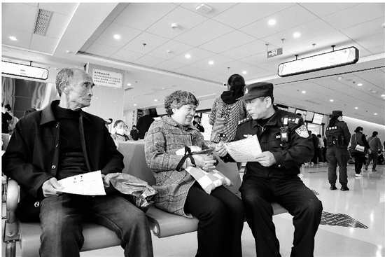近日,金华江南公安西关派出所民警走进辖区医院,通过发放宣传单、讲解真实案例等形式,向就医群众剖析虚假就医退费、推销“特效药”等诈骗套路,护好群众的“钱袋子”。 通讯员 王雨佳 摄