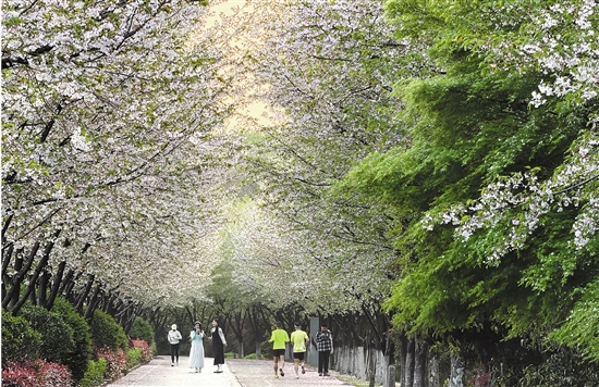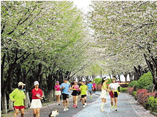 近日,杭州滨江樱花大道进入盛花期。粉云压枝,落樱伴跑。跑者穿花而过、游人拾香而行,人潮与花海相映,构成春日动人画卷。