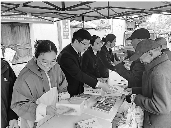 近日,磐安县检察院联合县自然资源和规划局、公安局、法院、司法局、综合行政执法局,在尖山镇开展2026年浙江省野生动植物宣传月暨第45届爱鸟周活动。本届主题为“翠鸣和合 羽飞华顶”。现场工作人员向赶集群众发放宣传手册,通过以案释法普及护鸟及野生动植物保护法律知识。 通讯员 殷明丽