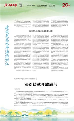 这条路上,昭示着以高水平法治护航高能级开放强省的未来图景——站在法治浙江建设20年的新起点上,浙江将继续以习近平法治思想为指引,在制度型开放中先行先试,在数字赋能中提质增效,在人才培养中厚植根基,努力让法治成为浙江推进中国式现代化省域先行的核心竞争力,为我国涉外法治建设贡献更多的浙江经验与浙江智慧。 (下转6版)
