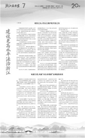 这条路上,昭示着以高水平法治护航高能级开放强省的未来图景——站在法治浙江建设20年的新起点上,浙江将继续以习近平法治思想为指引,在制度型开放中先行先试,在数字赋能中提质增效,在人才培养中厚植根基,努力让法治成为浙江推进中国式现代化省域先行的核心竞争力,为我国涉外法治建设贡献更多的浙江经验与浙江智慧。 (下转6版)
