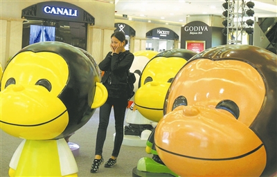 2016年春节即将来临,100只造型可爱的卡通“萌猴”亮相上海的南京西路商圈,吸引路人和游客驻足拍照,感受新春佳节将至的欢乐气氛。