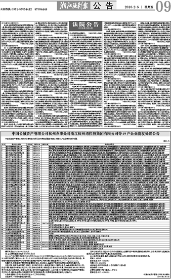 中国长城资产管理公司杭州办事处对浙江杭州湾控股集团有限公司等49户企业债权处置公告