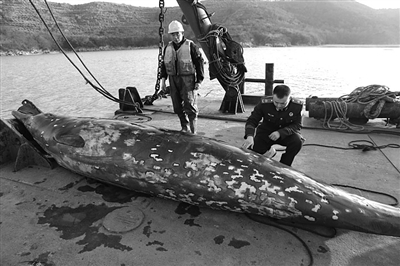 2月3日上午10时许,浙江公安边防总队舟山边防支队秀山边防派出所接群众报警称:在秀山大欢喜连岛大桥工程的滩涂上有一条“大鱼”搁浅了,正在挣扎。接警后,边防派出所官兵迅速赶往事发地点,发现搁浅的竟是一条灰黑色海豚,体长约4.8米。官兵们迅速组织渔民群众对其进行抢救,经过两个多小时的努力,终于将这只庞然大物送回大海。