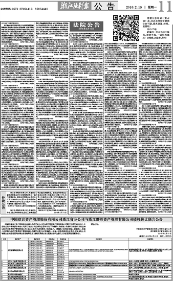 中国信达资产管理股份有限公司浙江省分公司与浙江群英资产管理有限公司债权转让联合公告