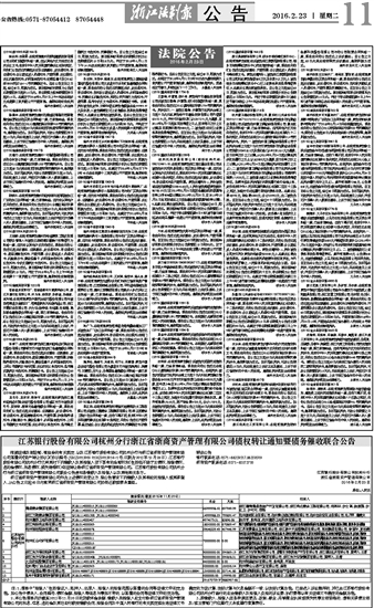 浙江伟英达工贸有限公司:本院受理原告湖州金泰科技股份有限公司与你公司租赁合同纠纷一案,现依法向你公告送达上诉状副本。自公告之日起,60日内来本院领取民诉状副本,逾期则视为送达。湖州市吴兴区人民法院