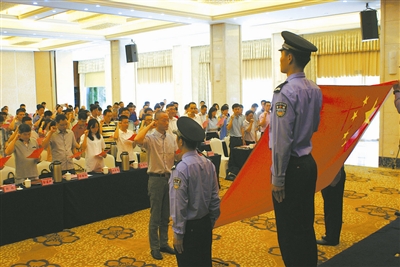 2015年7月29日,浙江省人民监督员就任宣誓仪式现场,129名新任人民监督员代表面向国旗庄严宣誓,标志着全省1320名人民监督员正式上岗履职。