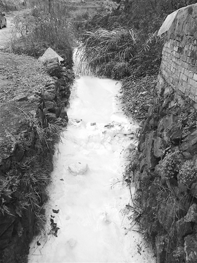 “奶白色的沉淀物是山上流下来的石灰。”路边一位80多岁的村民告诉记者。据他说,河水是从去年12月份开始变白的,特别是下过雨后,河道会变得更加浑浊。