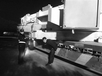 近日,320国道衢州超限运输车辆检测站的路政人员在路面巡查时,发现一辆安徽牌照的半挂车装运大件设备,属于严重超限运输。